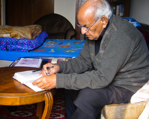 Abdul Aziz Khalid writing in his study/bedroom